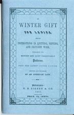 Instructions for Knitting, Netting and Crochet Work by An American Lady, dated 1847. It contains 65 pages of instructions and patterns from the latest London Edition. This book was reproduced from our private collection.