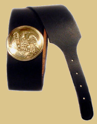 Federal Issue Cartridge Box Belt is constructed of thin yet firm blackened oak tanned leather. The belt is 2 1/4" wide and comes in Standard Length. The Federal Issue Cartridge Box Belt features an eagle breast plate and will be stamped with the contractor stamp "Sproulls Meeker & Co. New York".The leather is oiled and greased by hand for long lasting use.